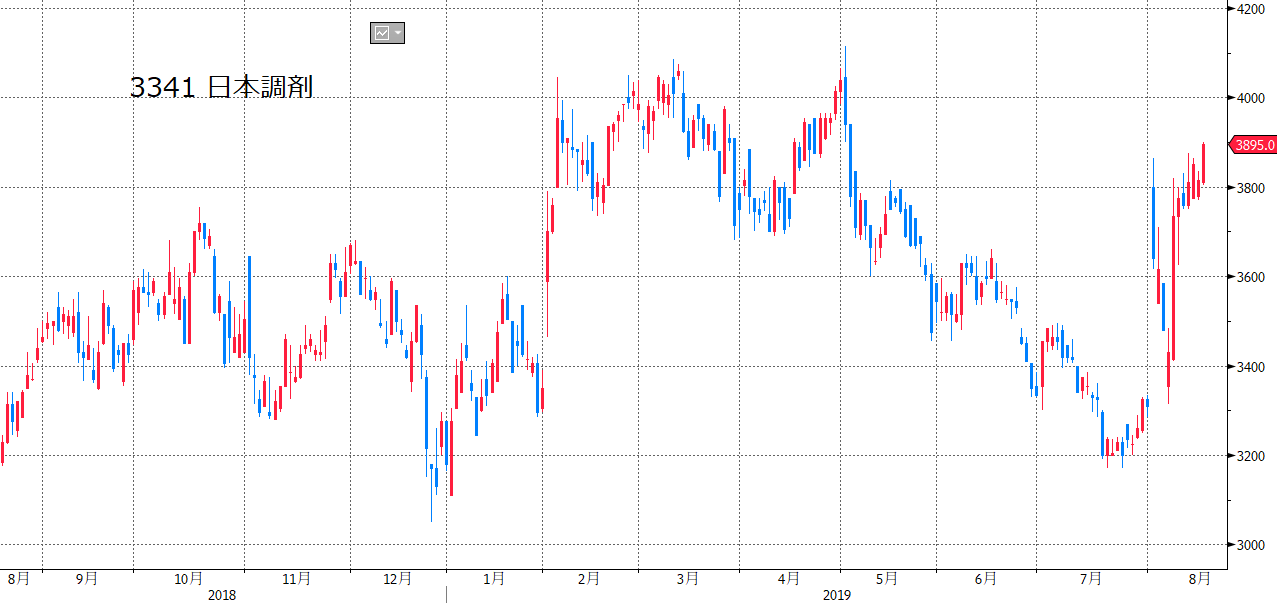 (注)上記5銘柄の株価は2019年8⽉21⽇(水)の終値です。下記チャートは時事通信情報提供サービスからの出典です。
