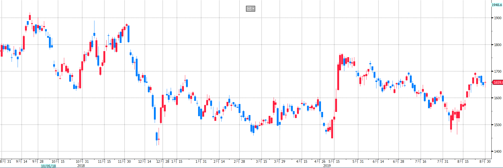 8月23日米中政府は関税引き上げをそれぞれ表明し、NYダウは前日比で一時700ドルを超える下げ幅を記録しました。26日、トランプ大統領はG7サミットの会場で「中国との交渉を近く再開する。記者会見でさらなる声明を発表する予定だ」と述べましたが、記者会見では具体策は打ち出しませんでした。また景気下支えの減税案についても、その発言に一貫性はないようです。二転三転するたびにマーケットは大きく揺れていますが、今回は、その影響を比較的受けにくいであろう不動産や小売り、サービス業を取り上げてみました。なお、株価、PER(当期予想)、PBR(前期実績)は8月30日引け値でjijipressから、チャートはブルームバーグから出典しています。