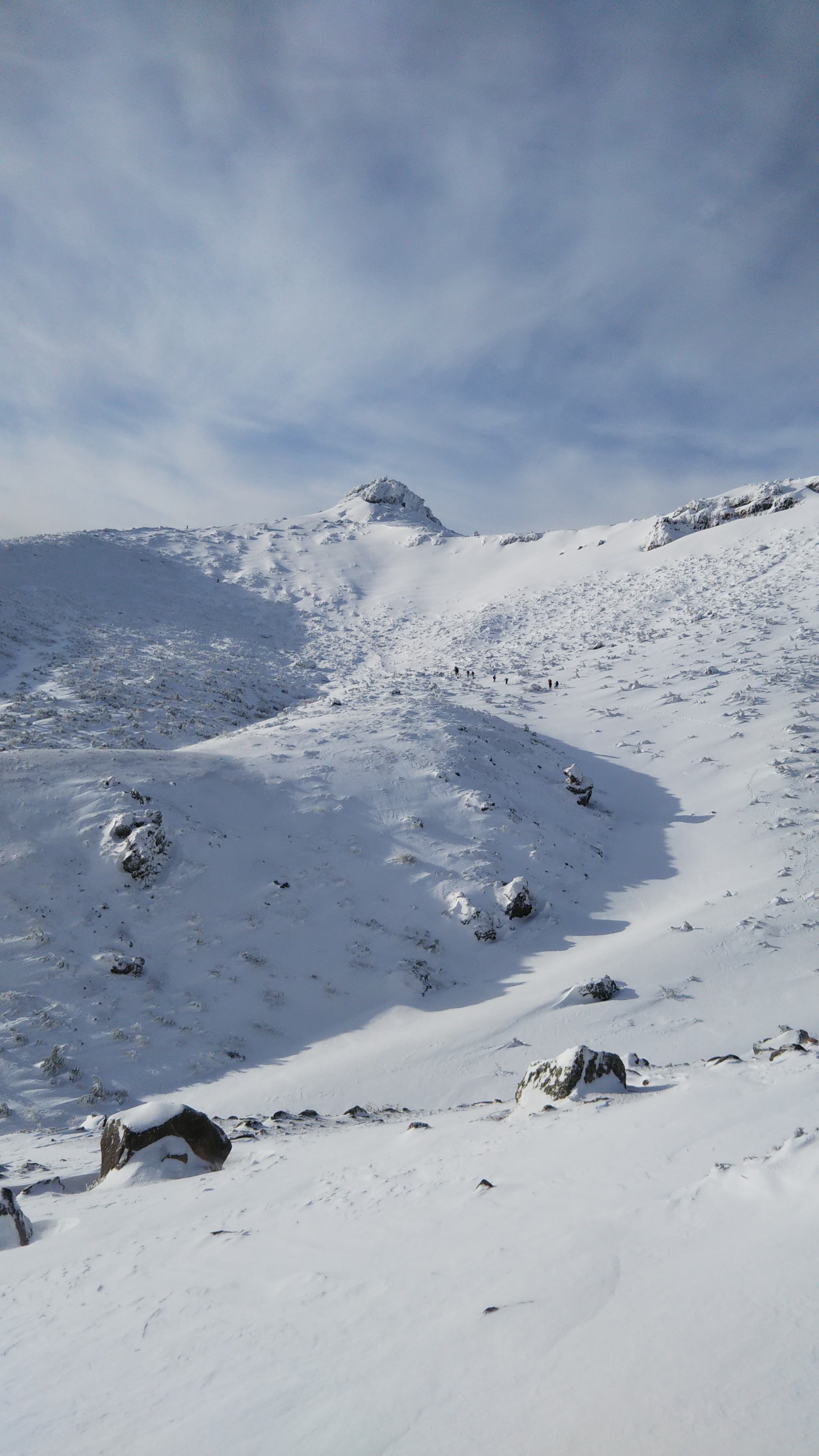 安達太良山にあるくろがね小屋は、数少ない源泉かけ流しの温泉が利用できる山小屋で、過去何回も宿泊しています。冬の安達太良山は曇天の日が多く風雪が非常に強いため、山頂に行けないことも珍しくありません。しかし今回の山行きは、雪は吹き溜まりでも1m程度で風はほとんどなく、二日間とも晴天で驚くほどの好条件に恵まれました。くろがね小屋は来年3月までの営業で、その後建て直される予定になっており残念でなりません。出来ることならば、来年も訪れたいと思っています。
