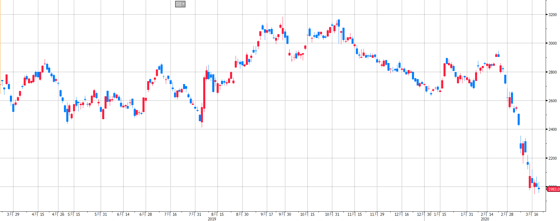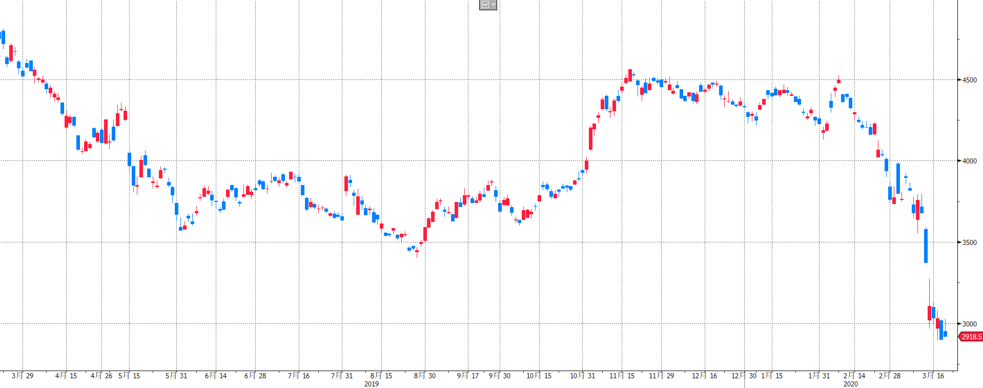 世界の株式相場は大混乱です。日米の中央銀行は3月15,16日に新型コロナウイルスによる経済の混乱を抑える狙いで対策を打ち出しています。3日に0.5%の緊急利下げに踏み切ったばかりのFRB(米連邦準備理事会)は15日、緊急のFOMC(米連邦公開市場委員会)を開催し1.0%の大幅利下げに踏み切りました。あわせて今後数か月間で米国債を少なくとも5000億ドル買い入れ、住宅ローン担保証券も2000億ドル購入する計画です。日銀も16日、金融政策決定会合を開き、現在年6兆円としている上場投資信託の購入目標額を12兆円に倍増したほか、CPや社債の購入、中小企業の資金繰り支援のための金融機関向けの資金供給を拡充します。トランプ米大統領は16日午後の記者会見で新型コロナの最悪期が8月まで延びる可能性や、米国景気が後退に向かっている可能性について言及、相場が一段安になる場面もありました。