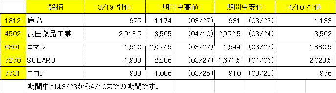 4月7日、安倍首相は特別措置法に基づく緊急事態宣言を発令しました。2月下旬から始まった日経平均の急落は3/19に16358.19円の安値を付け、3/25に19564.38円まで3200円強戻すなど乱高下を繰り返しています。自分としては、コロナもかなり相場に織り込まれているように感じてはいます。しかし4/8に住友商事が連結純利益を1000億円下方修正、4/9にはファーストリテイリングも純利益が前期に比べ4割減る見通しだと発表したように、他の企業も下方修正を出すことも十分考えられますので、二番底を付ける可能性も否定できないと考えています。