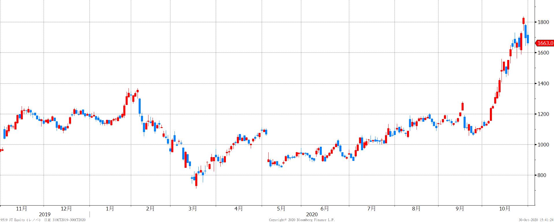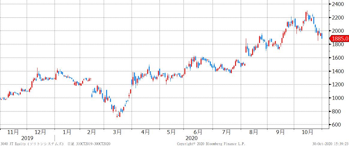 1人1台端末と高速大容量の通信ネットワークを一体的に整備することで、特別な支援を必要とする子供を含め、多様な子供たち一人一人に個別最適化され、資質・能力が一層確実に育成できる教育ICT環境を実現する「GIGAスクール構想」や、菅首相が目標として明言した2050年までに温暖化ガス排出量をゼロにするため「再生エネを最大限導入する」とした関連銘柄や、中国での業績が期待できる銘柄を取り上げました。なお、株価、PER(当期予想)、PBR(前期実績)は10月30日引け値でjijipressから、チャートはブルームバーグから出典しています。