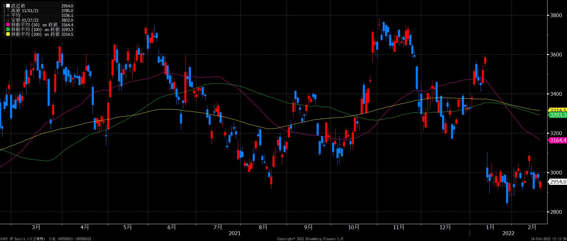 ここからは私見ですが、ウクライナ情勢やFRBの金融引き締めなど不安定な状況が続いていますが、金融引き締めについてはFRBの利上げ回数や資産売却など一定のコンセンサスが出来つつあるのではないでしょうか。ウクライナ情勢は両陣営からいろいろな情報が出てそのたびに右往左往する状況ですが、ロシアによる侵攻はないと自分は考えています。万一、侵攻があって日経平均が急落するようなことがあったら、買い場となる銘柄が多数出るのではないでしょうか。今回は米国などでインフレが加速していますので、資源関連銘柄中心に注目してみました。なお株価、PER、PBRは2月18日引け値でクイックから、チャートはブルームバーグからの出典です。