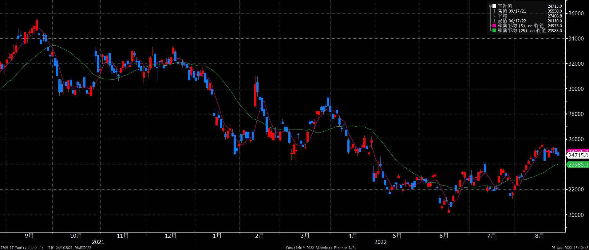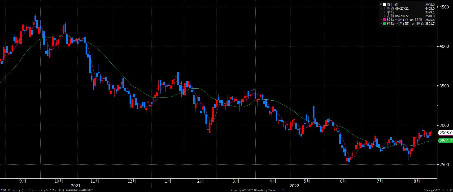 また同日、2022年12月期の連結純利益が前期比11%増の1,284億円になりそうだと発表しました。主力の欧州市場では高価格帯の自転車向け製品が好調に推移し、自転車部品工場がある東南アジアで米ドルに対する通貨安が進み、4~6月期に為替差益約100億円を計上したためです。欧州はインフレや利上げによる景気減速懸念が強まっています。同社は欧州関連銘柄として昨年末(2021年12月30日終値;30,660円)比、19.3%安(2022年8月26日終値;24,715円)となっています。同社は主力事業について7~12月期も1~6月期と同様に堅調に推移するとみています。同社は「高級自転車向けの割合が大きく、インフレによる需要減退の懸念は小さいとみている」としています。