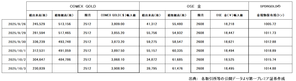「COMEX GOLD 及び OSE 金 取引集計表」と「SPDR ゴールド・シェア」の現物保有残高
