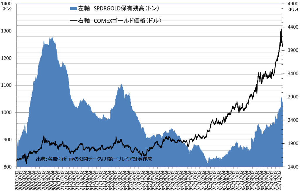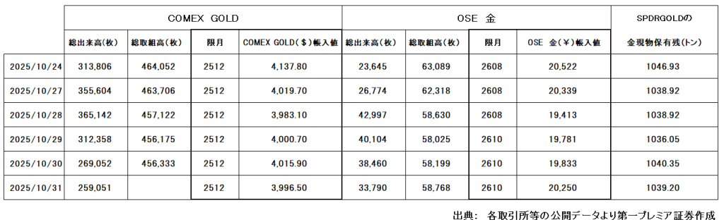 2025.11.04 会社 会社 プレミア・ゴールド・リサーチ no.238 第一プレミア証券が金の相場動向をお届けします。 ※週一回更新予定です。 ※チャートや数値はクリックすると拡大します。 「COMEX GOLD 及び OSE 金 取引集計表」と「SPDR ゴールド・シェア」の現物保有残高 SPDR ゴールド・シェア の現物保有残高 と COMEXゴールド価格 海外市場内部要因 ※ 投資にかかる最終決定は、お客様ご自身の判断と責任で行っていただくようお願い致します 日本ブログ村に参加しています。バナーをクリックし応援よろしくお願いいたします。 シェア! Twitter Facebook はてブ LINE Pocket feedly